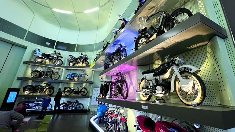 A display of 21 motorcycles representing over 100 years of motorbike design, covering commuter bikes, off-roaders, super bikes, tourers and speedway.